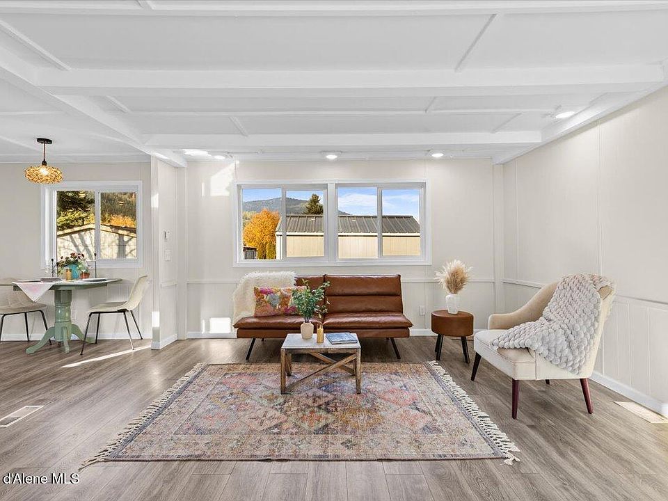 ADORABLE Renovated Manufactured home on the BEST lot in the park! Nestled in the friendly heart of Rathdrum, this charming home invites you in with everyday ease and North Idaho spirit. Imagine sunset strolls, relaxed living, and a space you can truly call your own—without the fuss. Conveniently located on the very last lot in the park, you are steps away from 3 different parks, downtown Rathdrum and a wonderful walking neighborhood! This is one of THE ONLY fenced lots PLUS it has TWO good size sheds for storage. Nearly EVERYTHING is brand new inside with fresh paint inside + out, this one will NOT last on the market! Whether you're after a cozy retreat, a smart investment, or a first-home stepping stone, this home offers simplicity, community and the kind of comfort that feels like home.