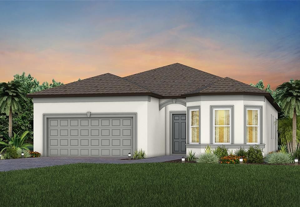 Under Construction. Experience a new level of retirement living at Del Webb Sunchase in Parrish, FL, with a free golf cart included. Picture a meticulously designed, resort-style residence with state-of-the-art amenities and engaging social spaces where lifelong connections are made. You’ll enjoy close proximity to world-class beaches, easy access to Lakewood Ranch, Sarasota, St Pete and Tampa, lush landscapes, and convenient living all in one. Featuring the popular Mystique floor plan with an open-concept home design, this home has all the upgraded finishes you've been looking for. The designer, gourmet kitchen showcases a center island and a large, stainless-steel single-bowl sink, stylish white cabinets and 3cm quartz countertops with 3”x12” tiled backsplash, a spacious pantry, and Whirlpool stainless steel appliances including a built-in oven and microwave, dishwasher, refrigerator and stovetop with a range hood. The bathrooms have matching white cabinets and 3cm quartz countertops, dual sinks in the Owner's bath and walk-in shower with a shower niche. There is luxury vinyl plank flooring in the main living areas 12”x24” tile flooring in the laundry room and baths and stain resistant carpet in the bedrooms. This home makes great use of space with a versatile, enclosed flex room, extended covered lanai with screen enclosure, a convenient laundry room with sink, and a 2-car garage with epoxy flooring. Additional upgrades and features include a sliding glass door at café area, upgraded hardware and lighting throughout home, LED downlights and floor outlet in gathering room, 8’ interior doors, whole house faux wood blinds and a Smart Home technology package with a video doorbell. Enjoy peace of mind with Pulte’s transferable, 10-year Limited Structural Warranty that covers materials and workmanship in the 1st year, workability of plumbing, electrical, HVAC, and other mechanical systems through the 2nd year, various types of water infiltration and internal leaks through the 5th year, and the structural integrity of the home through the 10th year. Plus, we’re currently offering limited-time incentives and below-market rates!