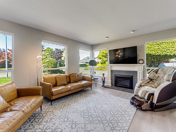 Stylish Rancher with Loft in Meridian by the Sea! This corner-lot gem offers a beautifully updated kitchen with ample storage, pull-out sliders, island, under-cabinet lighting, bright eating area, and stainless steel appliances. new windows, new roof, Soaring vaulted ceilings in the family room with automated shutters, plus a cozy sunken living room with its own fireplace. The spacious primary suite features a spa-inspired ensuite with double vanities, freestanding soaker tub, and walk-in shower. Upstairs, enjoy an open loft and third bedroom. Freshly painted with thoughtful updates throughout. South-facing private fenced yard, garden shed, huge covered patio for year-round entertaining, and double garage plus parking for four more vehicles.