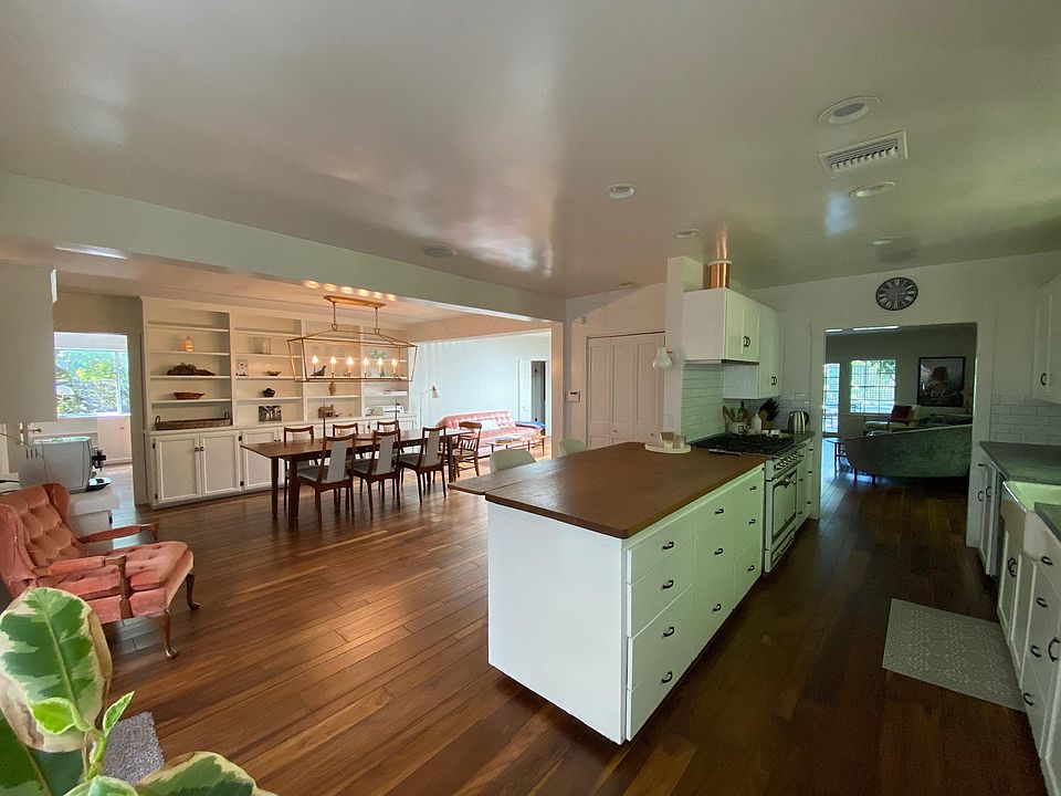 Charming Old-Hollywood-Era house on large terraced lot, nestled in the hills of Sherman Oaks. Rented fully furnished. A writer, director, producer or creative team's ideal work / living environment with over 3000 sq. ft. of space. Historically, it was once owned by Hollywood icon Kevin McCarthy. In the beautifully refurbished-original main house, you'll encounter 4 private bedrooms or offices, 3 bathrooms, a large pool with in-ground spa and brick lounge area, wood deck, 3 outdoor patios and fruit trees. Beautiful chef's kitchen with La Cornue range, Jura Espresso machine, All-Clad cookware, as well as Dekton, mahogany and marble counters for preparing meals. Central lounge / TV area with large skylight and stone fireplace. The entry opens up to a large lounge / reception area with French doors leading to an enclosed patio area. In addition to the office / bedrooms and lounge areas in the main house, there is also a private, detached pool house/cabin for breakout teams or meetings with a sleeping loft and bath. HVAC system includes UV air scrubber and HEPA filter. ADT and Ring camera system. WIFI enabled. Two landlines, Roku, house cleaning service, pool and garden maintenance and 3 on-site parking spaces all included. Tenant responsible for all utilities. This is an amazing space to host writing teams, creatives, pre-production or production teams. Two landlines, Roku, house cleaning service, pool and garden maintenance and 3 on-site parking spaces all included. Tenant responsible for all utilities. ADT and Ring camera system. WIFI enabled. Small dogs may be okay. Please contact listing agent with details about your pet. No smoking.