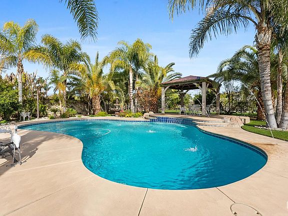 Sparkling poolRv parkingFruit treesCustom wrought iron staircaseBackyard oasisGourmet kitchenModern finishes