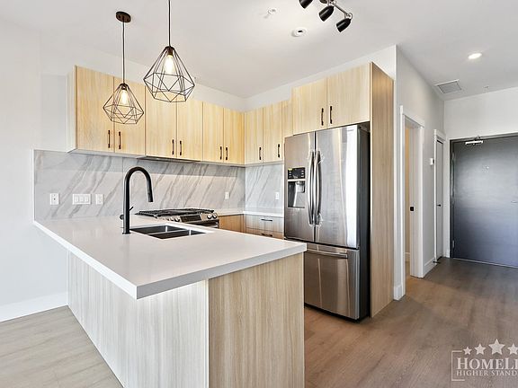 Modern open kitchen conceptAir conditioned unitsLaminate flooringQuartz countertopSecure underground parkingTank less water system