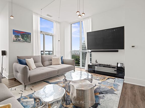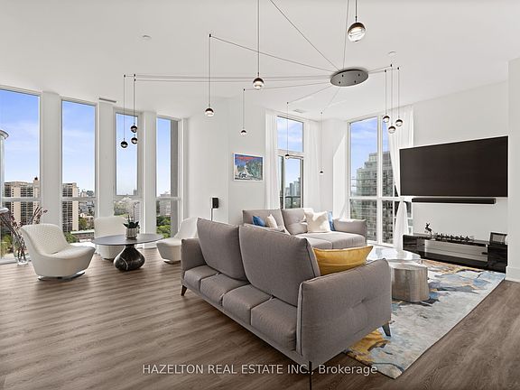 Exceptional Value for a Half-Floor Penthouse with Panoramic Views! The expansive 4-bedroom, 3-bath residence spans 2,177 sq. ft. with soaring 10-ft ceilings, hardwood floors, and five private terraces. Occupying half of the 18th floor, the suite shares its level with only one other unit, offering privacy and unmatched exclusivity. With two separate entrances to the suite, one of the bedrooms can be used for a live-in aid as it's fully equipped with two closets, separate bathroom and a walkout to the balcony. Every room showcases floor-to-ceiling windows with panoramic views of the lake, Casa Loma, and city skyline. The sunlit southwest corner family room features Roche-Bobois furnishings and a dramatic spider chandelier, while the designer dining room impresses with a chandelier-motif feature wall and sculptural globe pendants. The chef's kitchen is fully equipped with Miele appliances, oversized quartz island, custom cabinetry, pantry, wine fridge, and integrated coffee system. An oversized dome pendant spans the island, adding drama and modern elegance. The primary suite includes a sitting area with fireplace, custom walk-in closet, and spa-inspired ensuite with oversized shower and raised double vanity. The second bedroom features a private balcony, mirrored wall-to-wall closet, designer feather pendant, and ensuite bathroom with a tub and custom cabinetry. Two additional bedrooms with their own balconies offer flexibility for guests or office use. Ideally located at the intersection of Forest Hill and Humewood, two of Toronto's most sought-after neighborhoods. Steps to Cedarvale Ravine, Nordheimer Ravine, Winston Churchill Park and Casa Loma. Walk to St. Clair West for grocery stores, restaurants & cafés. Close to Forest Hill Village with shops, banks, gyms, everyday amenities and TTC at your door step to take you anywhere in the city!