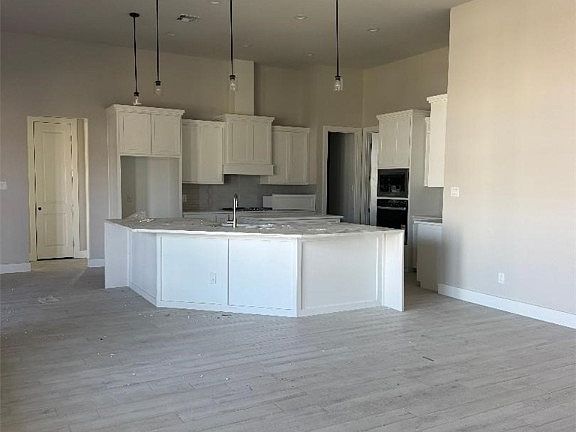 Gas stoveContemporary flowHumongous porchHigh ceilingsFour sides stuccoLarge open floor planStainless steel appliances