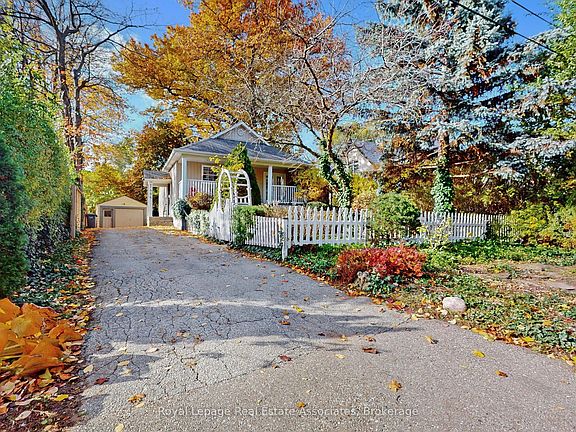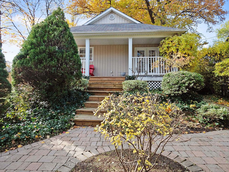Welcome to this charming 2-bedroom, 2-bathroom home in the heart of prestigious Mineola. Situated on a beautifully treed 50x132 ft lot, this property perfectly blends character, comfort, and opportunity. The open-concept living space showcases vaulted ceilings with exposed beams, wide-plank hardwood floors, and a striking stone fireplace that adds warmth and elegance. This property perfectly blends rustic charm with modern sophistication. The open-concept main floor features vaulted ceilings with exposed beams, wide-plank hardwood floors, skylights, and a striking stone fireplace that creates a warm and inviting atmosphere.Designed for both comfort and style, this home showcases reclaimed wood accents, designer finishes, and a seamless flow throughout. Skylights fill the home with natural light, creating an inviting atmosphere throughout. Step outside to a private, serene backyard surrounded by mature trees and a spacious deck that's perfect for entertaining or relaxing. With parking for up to 7 cars and a detached garage, this property offers both convenience and flexibility. Located in one of Mississauga's most sought-after neighbourhoods, just minutes to Port Credit Village, top-rated schools, parks, trails, restaurants, and GO Transit. Ideal for builders, investors, or those looking to design and build their dream custom home in a prestigious setting surrounded by multi-million-dollar properties.