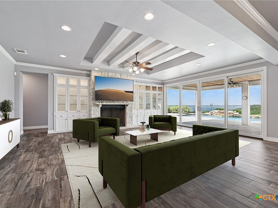 Contact Listing Agent for access to the property. Welcome to your dream home, an exceptional luxury retreat offering stunning panoramic views of Stillhouse Hollow Lake from nearly every room. This elegantly designed home features a spacious living area with soaring floor-to-ceiling windows, custom built-ins, and a beamed ceiling that creates a warm, yet sophisticated atmosphere. The chef’s kitchen is a culinary masterpiece, complete with a 6-burner gas stove, stainless steel appliances, prep sink, wet bar, and ample counter space for entertaining. Unwind in the serene primary suite, where you'll wake up to breathtaking lake views each morning. Step outside into your own private backyard oasis, featuring a sparkling pool with a waterfall, an outdoor kitchen, and a convenient poolside half bath, an entertainer’s dream. Additional highlights include a dedicated pool storage room, solar panels, a safe room, and an automatic attic elevator for effortless storage access to the 1500 square foot, decked and foam insulated attic. Perfectly located just 3 miles from the boat launch and lake picnic area, and only 7 miles from the vibrant charm of downtown Belton, where you’ll find famous BBQ spots, live music venues, boutique shops, and more. This exceptional home combines luxury, comfort, and thoughtful design with unbeatable views and amenities. Don’t miss your chance to own this one-of-a kind lakeview sanctuary.