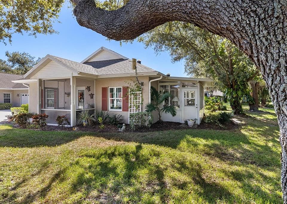 Discover the perfect blend of comfort and convenience in this well maintained villa, ideally situated within the highly sought-after Heritage Oaks Park community. Uniquely attached only by its garage, this charming home offers the privacy of a single-family residence with the ease of villa living, boasting a central location that truly enhances everyday living. Step inside to a welcoming great room that seamlessly flows into the open kitchen. The kitchen features a convenient breakfast bar, a dedicated dinette area, wood cabinets, granite countertops, thoughtful organizational features like stacks of drawers, a corner lazy susan, a spacious closet pantry, and newer stainless steel appliances. Home has natural light from several solar tubes and many hurricane windows. The high ceilings, with crown molding, and ceiling fans give a sence of spaciousness. For productivity and versatility, the dedicated den/office boasts a built-in desk. While the primary bedroom features a generous walk-in closet and an expansive shower with a comfortable built-in bench. Beyond the great room, sliders open to a beautifully tiled and enclosed porch, offering a bright, window-lined space perfect for year-round enjoyment and seamless indoor-outdoor living. Recent updates, including a new AC in 2016, a water heater replaced in 2022, and a new roof installed in 2019. Beyond your doorstep, the vibrant Heritage Oaks Park community offers a clubhouse, a large sparkling pool, tennis courts, many other events and activities. With its prime location you are moments from exceptional restaurants, essential medical facilities, stunning beaches, and so much more. This exceptional villa truly offers the perfect blend of comfort, convenience, and community, presenting an unparalleled opportunity to embrace the Florida lifestyle you've always dreamed of.