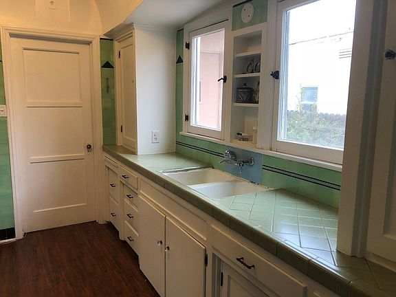 All the 1930's charm and more. This 2 bedroom, 1 bathroom Spanish style house has a charming covered front porch and courtyard. The foyer opens to a dining room and living room with barrel ceiling and historic tile fireplace. Original hardwood floors, coved ceilings, cool art deco original tile throughout the kitchen with stainless steel appliances and the best little breakfast nook with original built-in cabinets. Upgraded bathroom with soaking tub, laundry room with front loading washer and dryer, with a great back yard. Detached garage also for lots of storage! The best position on the best block on one of the best streets in the desirable Faircrest Heights neighborhood. Minutes to Culver City, Beverly Hills, Santa Monica, LAX, The Grove, Hollywood, and Downtown L.A. ** DO NOT DISTURB THE OCCUPANTS** The owner pays for Gardner only. Pets ok. No smoking.