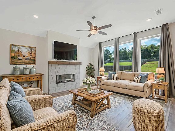 Nestled in the serene landscapes, this exquisite estate offers a harmonious blend of luxury, comfort, and natural beauty. Spanning 1,893 square feet on a sprawling .83 acre lot, this meticulously crafted residence is a haven of sophistication and tranquility, perfect for those seeking an unparalleled lifestyle in the heart of East Texas. Step into a world of refined elegance as you enter this stunning home, where every detail has been thoughtfully designed to elevate your living experience. The grand foyer welcomes you with soaring ceilings and gleaming floors, setting the tone for the impeccable craftsmanship found throughout. The open-concept living area, bathed in natural light, features a stately fireplace and expansive windows that frame breathtaking views of the lush, manicured grounds. The gourmet kitchen is a chef’s masterpiece, boasting top-of-the-line stainless steel appliances, custom cabinetry, a spacious center island, and luxurious countertops. Whether hosting intimate gatherings or grand celebrations, this culinary haven seamlessly connects to the formal dining room, creating an ideal setting for unforgettable moments. The primary suite is a private retreat, offering a sanctuary of relaxation with its generous proportions, new carpet and spa-inspired ensuite bathroom with soaking tub, dual vanities, and oversized walk-in shower, complemented by ample closet space. Additional bedrooms are equally well-appointed, providing comfort, new carpet, and versatility for family, guests, or a dedicated home office. The outdoor spaces of this estate are nothing short of spectacular. A sprawling patio, perfect for al fresco dining and entertaining, overlooks the meticulously landscaped grounds that create a serene backdrop with a 30x30 concrete pad. The property’s expansive acreage offers endless possibilities. Conveniently located, this estate offers the perfect balance of rural charm and modern convenience. Just minutes from the vibrant amenities of Tyler.