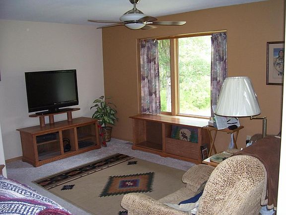 Gorgeous 3 bedroom 2.25 bath well maintained home on a manicured 5 acre Balm Lake lot. Features: maple flooring, kitchen, woodwork. Master suite. Insulated poured concrete construction. 2 garages. Heated shop. One basement bedroom does not have egress.