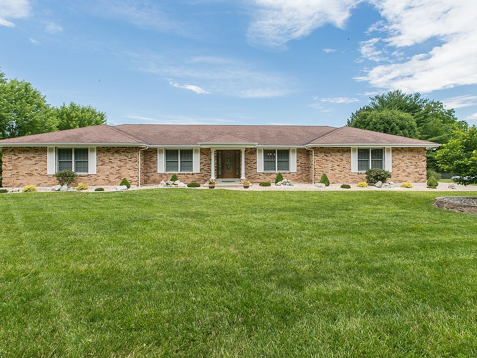 Sold Just renovated June 2016. 2,335 square feet all brick ranch with open floor plan. Three bedroom two bath with den/ or can be an optional 4th bedroom. With so many new updates, it is a must see! Home sits on 3/4 of an acre. Home offers superior craftmanship, and attention to details with solid interior doors, crown molding in dining room and den, hardwood floors in entrance foyer, dining room, family room, and hallway. Large family room has vaulted ceiling, 2 full masonry Fireplaces, one upstairs and second in basement lower level. Two exterior doors leading to patio off of great room. New open style kitchen with island, granite countertops and many extras. Main floor laundry room/mud room off the kitchen. Generous master suite with updated bath with separate jet tub and shower and walk-in closet. The walk-out LL has a masonry Fireplace, roughed in plumbing for bath and bar. Two new double exterior doors and two full size windows make the additional lower level space ready for finishing and still have ample storage space too. Home is fully landscaped with beautiful keystone tiers both in the front and back with a walk down staircase to the 2nd patio on lower level. Oversized 4 car capacity garage 25x40 has 2-30 amp service for 220 outlets and 1-50 amp service for 220 outlet. A true bonus for families with multiple cars or car enthusiasts and still have room for storage. Come see for yourself and check out all the extras this just renovated home now offers! Showings by Appt. Only Please Call 314-304-3654 Buyers Agents Welcome