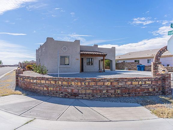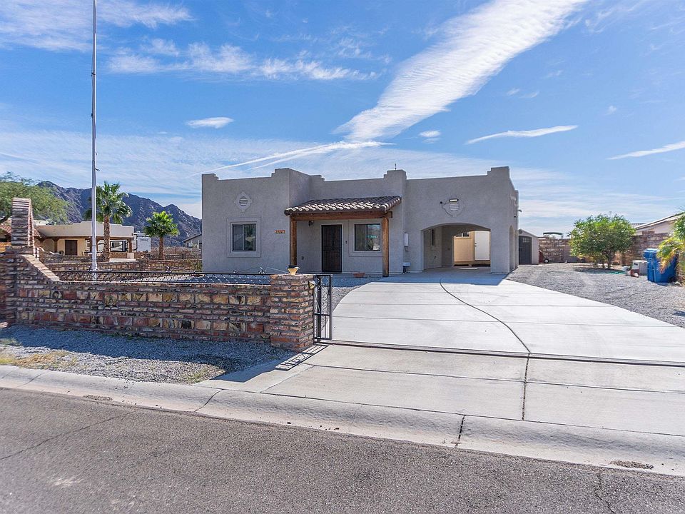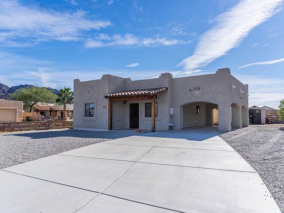 Welcome to this beautifully maintained, custom stick-built Santa Fe style home, proudly cared for by its original owner. Designed with quality, longevity, and energy efficiency in mind, this 2-bedroom, 2-bath home offers a brilliant use of space. Step through the unique Santa Fe–inspired entrance into a warm, inviting interior perfect for a variety of lifestyles. The open layout includes a spacious living area, kitchen, and comfortable bedrooms, creating the perfect blend of style and practicality. Outside, enjoy RV parking, a covered carport, and a workshop—ideal for hobbies, projects, or extra storage. Enjoy quick access to the freeway, nearby desert adventures, scenic mountain views, and golf courses. Whether you’re searching for a primary residence, river house, or winter retreat, this home offers exceptional curb appeal and versatile living in a peaceful setting. Move-in ready and truly one of a kind!