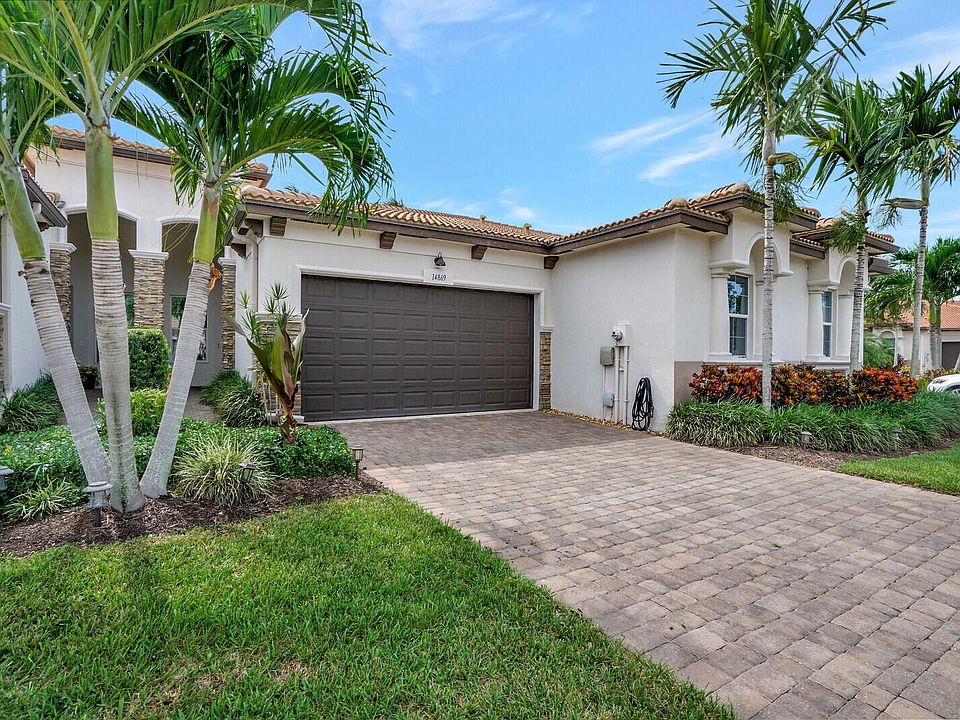 WOW! Highly desirable & rarely available Ravenna patio villa model now for sale in Delray's popular 55+ Villaggio Reserve community. Stunning 2BR/2BA unit with den, expanded porch & 2-car garage. White/stainless/granite kitchen, open to the dining & living room areas. Enclosed den features soundproofing & can be used as a 3rd bedroom/guestroom. Custom mirror & LED lighting. Beautiful porcelain wood tile throughout. Leaded glass entry door & screened patio with water view allow for natural light to stream in. Offered fully furnished/turnkey. Villaggio Reserve residents enjoy a state of the art clubhouse with theatre, card rooms, classes/clubs, cafe serving breakfast/lunch, fitness center, tennis, pickle ball, resort-style pool/spa, and much, much more. Check out your own piece of paradise!