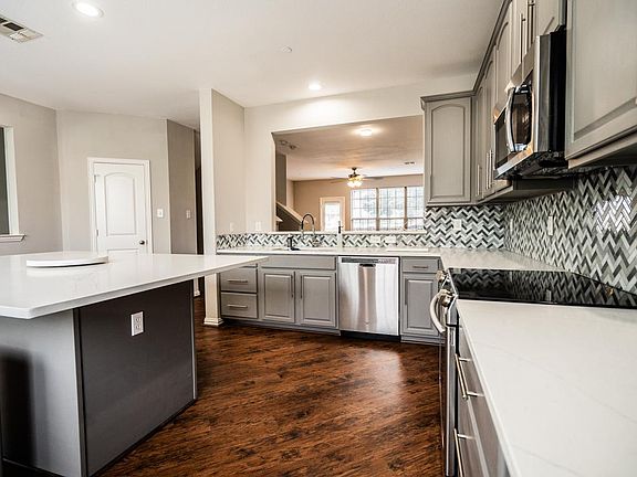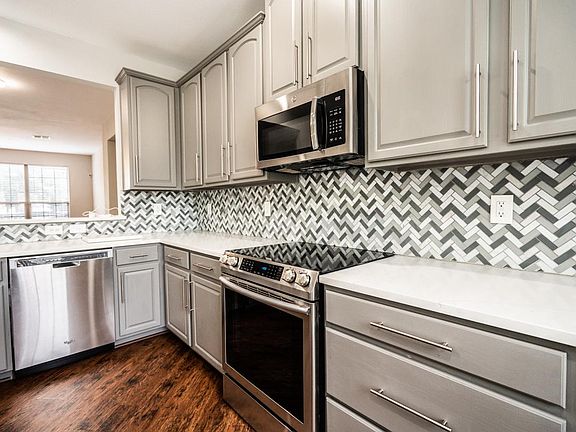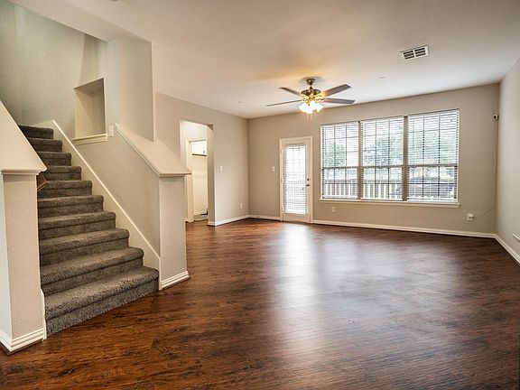 This remodeled townhome is a true gem with modern upgrades throughout. The first and second floors feature attractive wood laminate flooring. The first floor offers a versatile space, perfect for a home office or playroom, along with a convenient half bathroom. The living area seamlessly flows into the beautiful kitchen, which boasts a large balcony, mosaic tile backsplash, newly painted cabinets, updated hardware, and a center island. Brand-new stainless steel appliances, including a built-in microwave and dishwasher, enhance the kitchen. The townhome also features fresh carpet, paint, lighting, ceiling fans, and updated faucets in the three bathrooms. The spacious owner's suite includes an en-suite bathroom with a separate tub and shower. The community pool adds to the appeal, and the location offers easy access to 635 and 190, as well as various dining, shopping, and entertainment options.