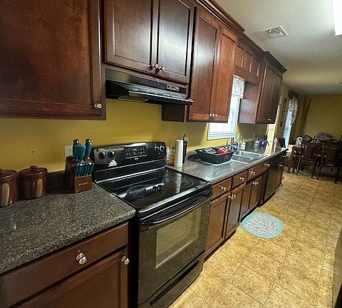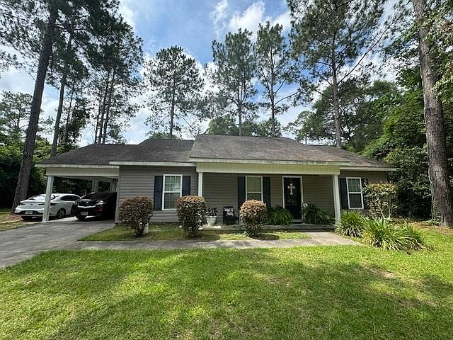 This house features three bedrooms and two bathrooms. It includes a covered porch, ideal for relaxing outdoors, and a patio for additional outdoor space. The paved driveway with concrete provides ample parking and easy access. Inside, the flooring consists of carpet in some areas for comfort, vinyl in wet areas like bathrooms, and laminate in high-traffic areas for durability. Overall, this house offers a balanced combination of indoor and outdoor amenities suited for comfortable living.