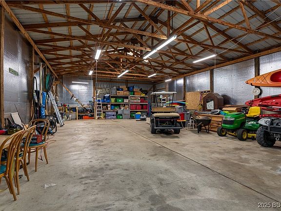 AFFORDABLE COUNTRY CHARM CLOSE TO THE LAKE! This peaceful retreat sits less than a mile from the Gravois Arm of the Lake of the Ozarks and offers the perfect mix of comfort, privacy and functionality. The incredible 60x30 shop is a dream setup with concrete floors, water, its own electrical panel and 2 large sliding garage doors making it ideal for a workshop, RV or boat storage, or the ultimate Man Cave/She Shed. The property backs up to over a 100 acres of undeveloped woodlands, providing abundant wildlife and incredibly peaceful privacy. Enjoy watching deer and turkeys play in your backyard from the comfort of your screened-in back porch or the shaded backyard. Inside, the flexible layout features multiple living spaces, and one additional room which could easily serve as a large third bedroom. The location is hard to beat as it's just 15 minutes to Laurie or Versailles with paved roads all the way. Whether you’re looking for a full-time residence or a weekend retreat near the lake, this property offers the space, serenity and setting to make it your own relaxing retreat.
