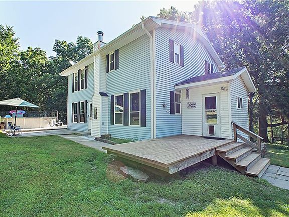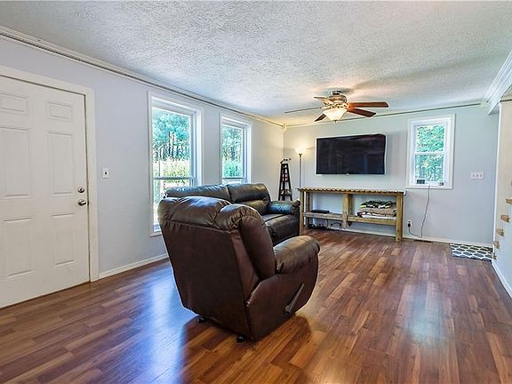 Beautiful 7.24 ac +/- private oasis on top of Trammel Mtn. Surrounded by 100+ y.o. oaks, pines, & flowering trees. Hard surface flooring throughout w/beautiful pergo wood flrs in LR & BR's. Spacious KIT fts corian countertops, pantry, ss app & bar area. MBR has walk-in closet. Nice mud rm & laundry rm w/laundry shoot. Deck provides the perfect place to sit back, relax, & enjoy the abundant wildlife or jump in the pool. Yard also has backstop for those handgun enthusiasts, & fenced in area for kids & pets.