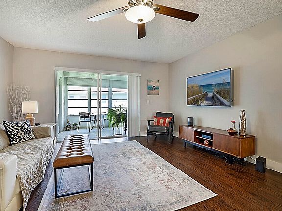 Beautifully updated with peace of mind built in -- this 55+ home features all impact glass windows plus roll-down shutters on the back patio. Inside, enjoy quartz countertops, shaker cabinetry, stainless steel appliances, a new stackable front-load washer and dryer, wood laminate flooring, updated bathrooms, and a new AC. Relax with a peaceful garden view in a well-maintained community with no special assessments.