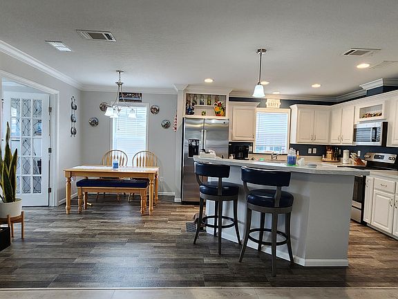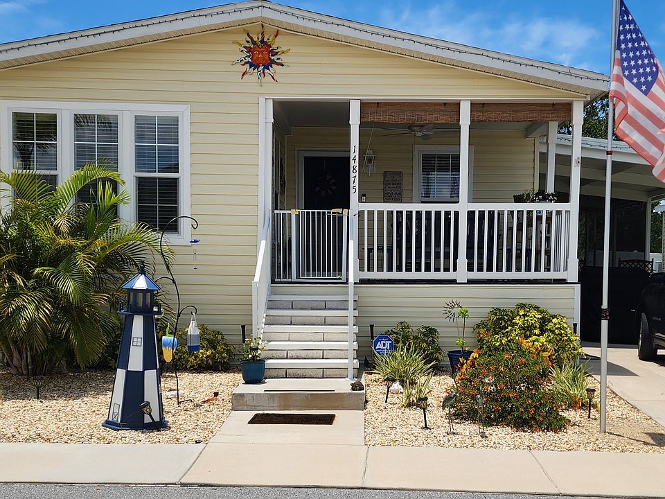 Welcome to Shadow Wood Village! A beautiful Active 55+ Community in Hudson Florida.Welcome to this beautiful 2022 Jacobsen home with tons of storage. This home includes 2 bedrooms, 2 bathrooms and a den with French doors right off the dining room. This large kitchen has plenty of room for prep and eating as it has a large island and dining area. Multiple cabinets are included in the laundry room and primary bathroom. There is also a large screened in area under the carport providing additional space. Enjoy your morning coffee on the front porch and say hello to our friendly community!