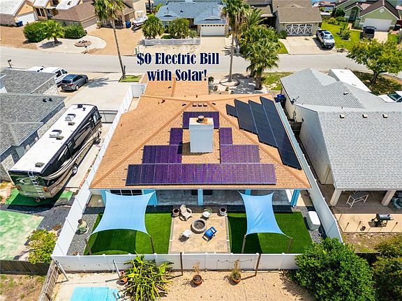 $5000 Flex Cash offered towards Rate Buydown or Closing Costs. Great Vacation Home or Primary Residence on North Padre Island! Low Maintenance Landscaping. Save $500 -$700 per month with Solar Panels, NO Electric Bills! Backup Generator. Great Curb appeal outside and Beauty inside with a very Comfortable Floorplan. Separation between Primary and Secondary beds on opposite sides of home. Wood Burning Fireplace, Covered Back Patio and Outdoor entertaining space. Spacious Primary En-suite with separate shower, garden tub, large closet. Vinyl Privacy fencing, completely enclosed back yard. Oversized Driveway, extra storage on Side for normal size boats. Recent updates, 2 yrs HVAC system and new ducts, water heater, stove, microwave, solar screens, new LVP floors throughout, fresh paint inside and out! Boat Ramp and Dock at end of street, be on the Water Fishing within minutes. Short drive to the Beach, Restaurants, other Island Attractions and Corpus Christi just across the Bridge.