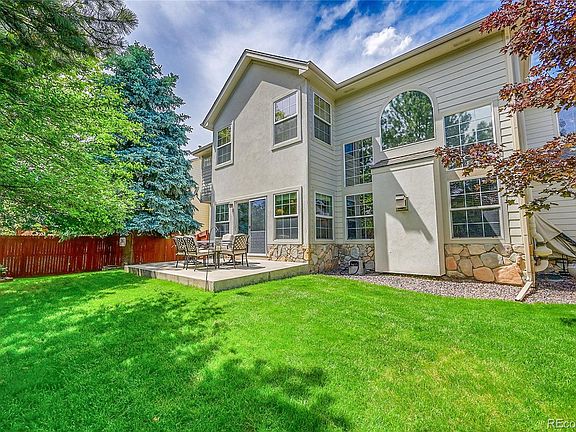 Nestled in the boutique Orchard Valley at Cherry Creek Park, this stunning 5-bedroom, 5-bath home offers sophistication, space, and easy access to Cherry Creek State Park. Located in the award-winning Cherry Creek School District and near Regis High School, this residence is designed for both comfort and style. Step from the cozy covered front porch and into a breathtaking two-story entry, where an open, light-filled layout welcomes you. The formal living room with vaulted ceilings flows seamlessly into the dining room, perfect for entertaining. At the heart of the home, beautiful hickory floors lead to a chef’s dream kitchen, featuring stainless steel appliances, double ovens, and a Viking vent hood and gas cooktop. The center island, breakfast bar, dining nook, and planning desk add convenience, while sliding doors open to a private backyard oasis with mature trees, a fenced yard, and a gas line for grilling. Relax in the two-story family room, where a gas fireplace with custom wood mantle creates a cozy ambiance. The executive office, framed by French doors and crown molding, easily converts to a sixth bedroom. A bath with shower and laundry room complete the main level. Upstairs, the private primary suite sanctuary boasts a tray ceiling, crown molding, a spa-inspired five-piece bath, and a 13-foot walk-in closet. A guest suite with walk-in closet and private bath joins two generous bedrooms, one featuring built-in bookcases and a charming window seat, sharing a Jack-and-Jill bath. The finished basement is an entertainer’s dream with a home theater with surround sound, built-in bar with a beverage cooler, and a game room. An additional office or non-conforming bedroom plus an elegant bath complete the space. Plus a versatile 3-car tandem garage. Enjoy exclusive neighborhood amenities, including a pool, clubhouse, and park, all just 30 minutes from DTC, 470, Anschutz Medical Campus, and I-25. Don’t miss this exceptional property. Schedule your tour today!