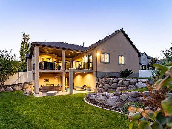 Covered patioCovered deckCorner lotImpressive stone fireplaceRich natural wood floorsStunning wasatch mountain viewsTv mount