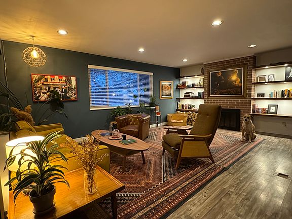 There is a bathroom downstairs as well with a newly renovated standing shower. And lastly a second living room space (again with a fireplace) that is currently set up as a projector / entertainment room.