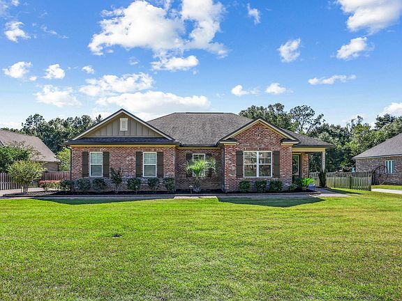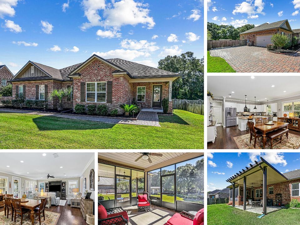 Unmatched curb appeal in the sought after subdivision of Mill Creek Farms. This gorgeous Randy Wise home boasts a custom paver driveway and sidewalk, illuminated with hardwired lighting, that welcomes you to a generous side entry porch. An open living/dining/kitchen area is located in the heart of this 4 bedroom/2 bath home. You will find crown molding, 8 foot doors and granite counter tops. The screened in back porch flows onto a covered patio built by Titan Sunrooms. The backyard oasis is beautifully manicured and fully irrigated. The fully fenced yard boasts a 10 x 20 shop, RV pad with a 50 amp electrical hookup, paver firepit area and park like views of the Baker Recreational Arena. Close to beaches, shopping and military bases; this home has everything you have been looking for.