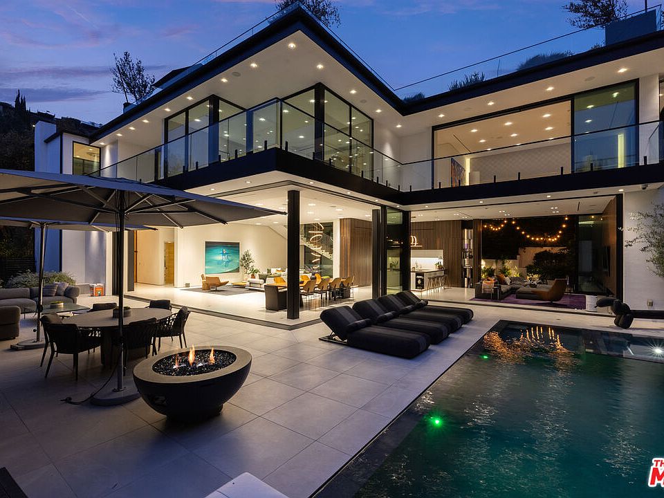 This ultra-private Organic Contemporary estate has been meticulously crafted to meet the highest standards of luxury. Encompassing approximately 7,000 square feet of voluminous living space, the home blends modern design with natural elements, offering exceptional scale and an abundance of natural light throughout. A dramatic entry begins at a custom double-height Brazilian Monkeywood pivot door, leading into a grand, light-filled foyer. Seamless indoor-outdoor living is achieved with disappearing walls of glass that open to an expansive pool area complete with an outdoor kitchen, BBQ, firepit and integrated smart home features throughout the property. Designed for both grand entertaining and intimate living, the residence includes four luxurious bedrooms all with en-suite bathrooms, a state-of-the-art home theater, a wine-tasting and billiards lounge, and a fully outfitted basement bar. The opulent primary suite offers a sanctuary of style and comfort. The one-of-a-kind rooftop deck, showcases panoramic views of the skyline - a perfect backdrop for sunset entertaining or quiet evenings under the stars. This is the perfect Hollywood Hills retreat. A true collector's home for the most discerning Buyer.