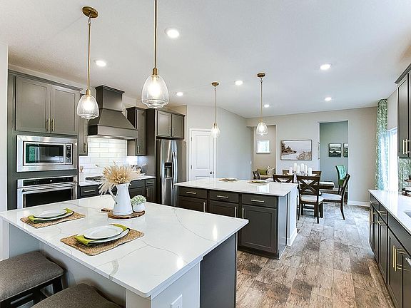 This show stopping Redwood is a must see! One of just five homes on a cul-de-sac, you'll love the home even more than the location. Stunning features include an open layout, a chef's kitchen with TWO islands, walk in pantry, quartz countertops, tile backsplash, double wall ovens, and gas cooktop. Upper level offers 4 bedrooms including a spacious primary suite, bedrooms with a jack and jill bath, a large loft and a dedicated laundry room. Irrigation, sod and Smart Home Technology are included. Oak Creek offers large homesites, conservation space, walking trails and a new neighborhood park. Located between the charming towns of Chaska and Victoria, you'll find top notch golf and lakes, opportunities to shop and dine local, as well as the convenience of a Super Target and Costco, and easy access to Hwy 212. This home is under construction and is scheduled to complete in end of June. Our model at 1634 Oak Creek Drive is the same floorplan and open for viewing.
