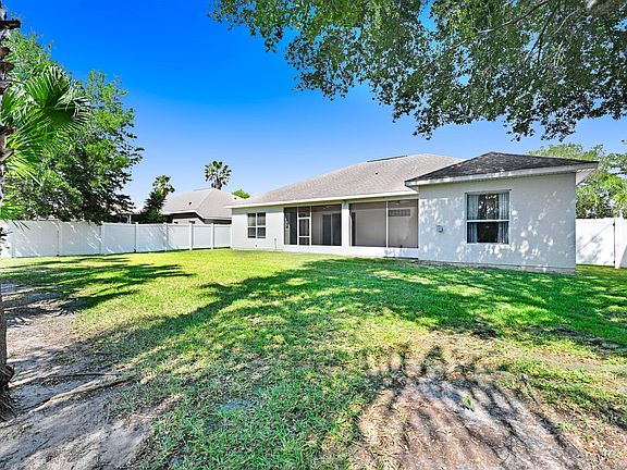 Lovely 3 BR/2 BA home with a privacy FENCED, large back yard in a sought-after Viera community! This move-in ready home features very large bedrooms, a very spacious kitchen with island, pantry, breakfast bar and a sunny nook! Great room features built-in shelving and opens to an extra large screened patio with a beautiful, custom painted floor. The perfect spot to unwind and relax with friends/family. Spacious primary bedroom has slider access to the patio as well as 3 closets (one walk-in). Master bath features a walk-in shower and separate soaking tub, double sinks, and glazed windows to let in natural sunlight. Two large guest bedrooms share access to 2nd full bathroom. This special home also has a partially enclosed dining room with chandelier just off the great room! Separate laundry room w/ sink & shelved closet. Brand new water heater and new AC. The Capron Ridge community has a beautiful clubhouse, a great community pool, playground, tennis court, gym, gated entry & more!