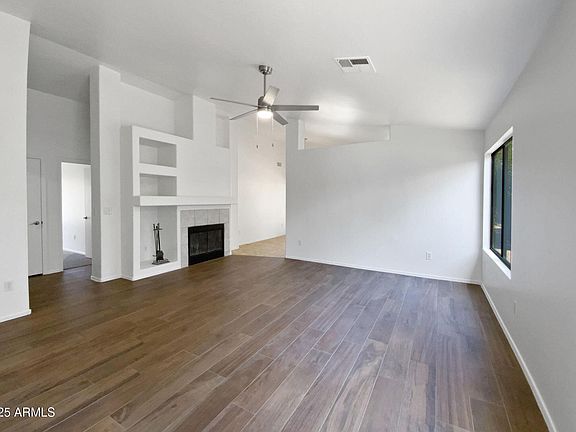 Stylish 3 bed, 2 bath home with a private pool in the highly desired North Shore community in Gilbert. This home features an open living area with a fresh paint and carpet, cozy fireplace, and a kitchen with center island and a brand new refrigerator and oven. The AC is also brand new with outstanding efficiency for low bills! The primary suite includes a walk-in closet and private bath for added convenience.