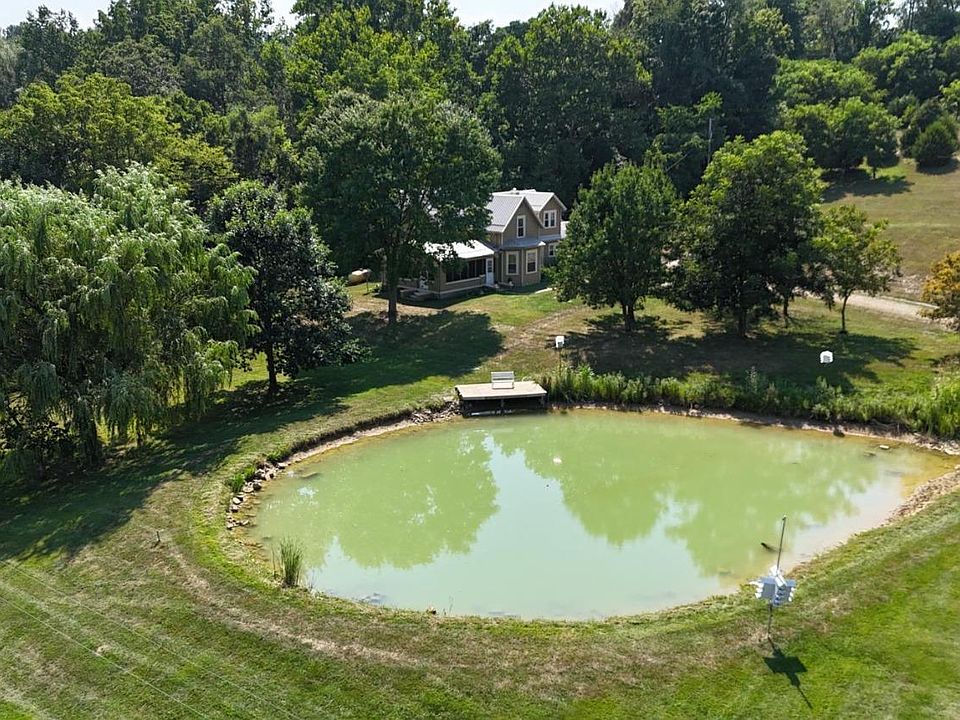 Joins Paint Creek State Park, mile to the Marina! Impressive 5 BR, 3 BA Turn-of-the-Century farmhouse abounds with history, quality, charm, & old-world elegance! Eye-catching country estate offers business opportunities, Bed & Breakfast or lake related ventures! New & original hardwood floors, bow window, natural woodwork, solid wood doors & crown molding! Spacious formal living & dining rooms w/tall ceilings, a parlor, & a den offers a wood-burning fireplace w/original tile & marble! The neatly designed kitchen boasts an island, solid oak countertops, built-in's & walk-in pantry! The master bedroom showcases a cathedral ceiling & large bay window overlooking the scenic valley! Amenities include a full basement, wrap around screened porch & freshly painted garage. A wood furnace barn for multiple heat sources! Generous 3.67 gently rolling acres, mature trees & a stocked spring fed pond & wood dock! Extensive renovations, no detail overlooked, awesome surprises around every corner!