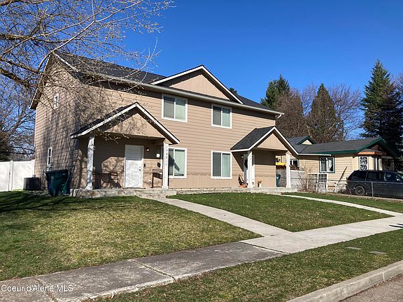 Great opportunity to own an investment property centrally located in Midtown Coeur d'Alene. Excellent location, close to grocery stores, schools, parks and easy I-90 access. Each unit is a 3 bedroom 1.5 bath. The property has a front yard sprinkler system, detached 1 car garages with alley access. Fully fenced rear yard offer privacy for backyard grilling. Each unit has A/C, gas forced air, includes refrigerators and washer/dryers.