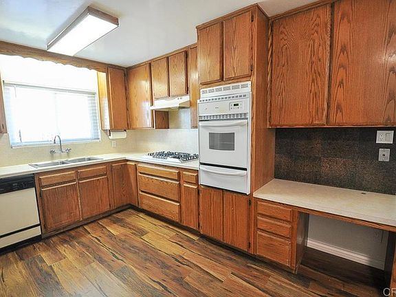 Meticulously maintained single story home on beautiful lot! Spacious layout features kitchen and dining near living room with access and views to the backyard. Primary suite is extra large with double closets and an en-suite bathroom with accessibly-friendly shower. The second double sized bedroom has a slider accessing the backyard and a decorative vintage wood stove. Large kitchen features a gas cooktop, built-in oven, and many storage cabinets. Lush backyard has a covered patio, storage shed, great built in area for a veggie garden, and many beautiful plants including pomegranate, orange, avocado, meyers lemon, lime, apricot, plum, plumeria, hibiscus, and roses. Many upgrades include dual pane vinyl windows, newer paint inside and out, and vinyl plank flooring throughout with new carpet and tile in the primary bedroom. Ample parking with attached 2-car garage with new door opener and large driveway off private road. This one is a must see!!