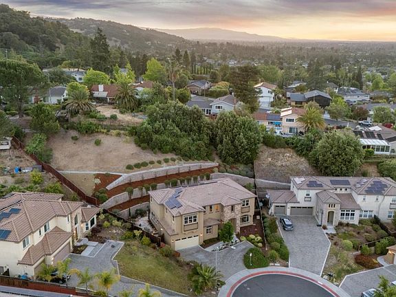 Quiet cul-de-sac location, Built in 2013, enjoy large lot w/ privacy & elegance w/ easy indoor-outdoor living in one of Almaden's hillside enclaves. Stately curb appeal has stone accents, wrought iron balconies, paver dwy framed by mature landscaping. Inside-volume ceilings, lg picture windows & wide-plank hardwd flrs. Lovely views are showcased thru-out. Formal living rm & dining rm + open-concept kitchen & adjacent spacious family room, perfect backdrop for daily living & effortless entertaining. Top of the line finishes/fixtures. Main floor en-suite bedroom provides a versatile space for work or visiting friends/family. Upstairs, 4 spacious bedms surround a bonus room. Spacious primary suite has tray ceiling, tons of natural light & spa-inspired bath w/ lg vanity, sep tub & shower. 2 bdrms share hall bath & additional bdrm has attached bath. French doors to access gorgeous rear yard. Perfect place for quiet relaxation or entertaining. Soothing sounds from multiple water features, vibrant flower beds, towering hedges for privacy & generous paver patio. Custom-built outdoor pavilion w/ gas fireplace. Inside laundry & oversized 3-car garage. Great location-minutes to Quicksilver hiking trails, parks, shopping & easy access to top-rated Almaden Valley schools & commuter routes.