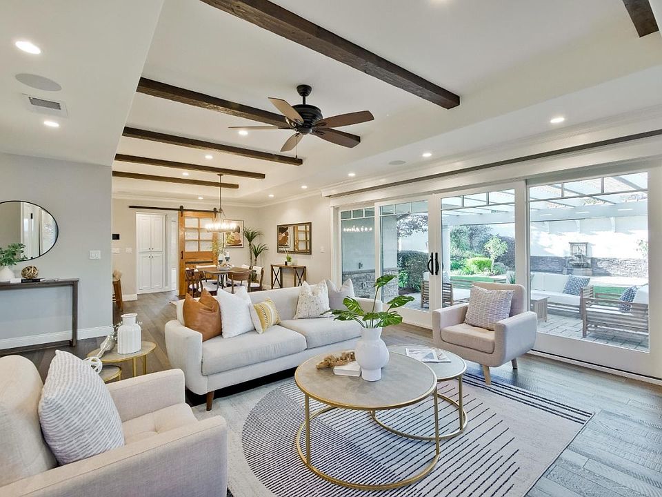 This stunning, updated, custom home, has an open floor plan that lives like a much larger property. Thoughtfully designed to make the most of every space, both indoors and out. This smart home has been thoroughly remodeled down to the studs. High end materials and quality craftsmanship set this home apart, this is not a flip and truly reflects pride of ownership. The open-concept living room with hewn accent beams connects to the sprawling patio and yard through an expansive 16' glass door. Custom cabinets, engineered hardwood floors, all-new wiring, copper plumbing, smart LED lighting, integrated speakers, vaulted wood ceiling, automated window shades, heated bathroom floor, curbless shower, and owned PV solar are just some of the features you will find. This exceptional one-of-a-kind property was built to live better. Professionally landscaped yard with custom arbors, accent lighting, paver patios, and hot tub make for an excellent place to relax and entertain. Great location, great floor plan, and great schools add to the appeal, come see for yourself!