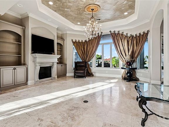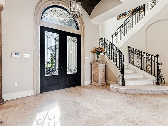 Enjoy waterfront living at it's finest in this Mediterranean dream home! Stunning water views in every direction with home features to include; a stylish wet bar, a butler’s pantry, and a spacious great room for entertaining. The gourmet kitchen is a chef’s dream, showcasing a breakfast bar, 8-burner range, custom cabinetry, double ovens and dual sinks.