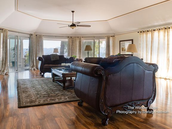 Furnished/unfurnished 3000 sq. ft. mediterranean style villa, on hilltop location, above the Arbolada area. Homeowners live on property in separate 2000 sq. ft. upstairs apt. Views overlooking the town of Ojai and mountains. Steps to Los Padres National Forest and 5 minute drive to downtown Ojai. There is an enclosed patio and veranda with beautiful sunrises. There is a cabana, with views overlooking the mountains and valley. The cabana overlooks the deep swimming pool, and putting green. There is a spacious kitchen and spacious living room with grand piano. There is a dining room with a fireplace, big screen tv, and cable. The 1st bedroom has a king size bed with an attached bathroom and TV. The 2nd bedroom has 2 queen beds with an attached bathroom. There is a 3rd hall bathroom. Location is near trails and 5 minute drive to downtown. There is A/C, whole house water filtration, solar panels, and a basement laundry room with washer and dryer. Pets must be preapproved. This home was used as a vacation rental at over 6k a month. Please see reviews on A1rbnb for 30+ days minimum bookings. Lease of 3 months or longer. Must have renter's insurance. Gardener, pool service, trash and internet are included. Electric (There are solar panels), gas and water will be divided. Hosts live on property in separate upstairs apt., with a separate entrance. This is a 5000 sq. foot property. Rental space is 3000 sq. ft. There is shared yard, and driveway space. Hosts' have 2 dogs and 2 cats, which are kept separate from guests. 2 parking spaces available in driveway + street parking. No large parties or any events allowed. Swimming pool is deep, not fenced, unsupervised, and not child safe. For the preceeding reasons, we cannot rent to families with small children. Will consider pets. No garage space. Nonsmokers only. No pot or drugs. $4000 deposit. Background and credit check required.