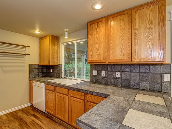 Features hardwood & slate floors, radiant heat, vaulted ceilings, skylights, master with walk-in closet & private deck! Main floor boasts large stylish kitchen w/breakfast bar. Adjoining family room with gas fireplace. The fenced backyard is a tranquil space that backs up to a swale, ensuring additional privacy. Centrally located in on of Bellingham's more popular neighborhoods, Silverbeach, and located near schools, shopping, lake Whatcom & trails.