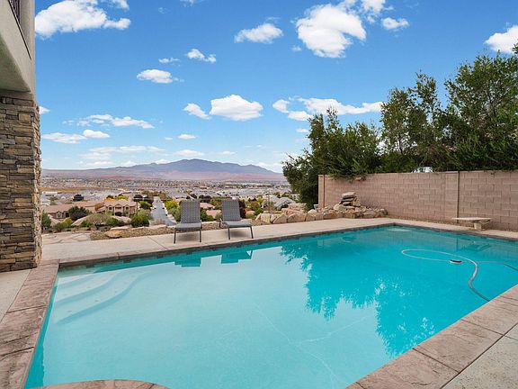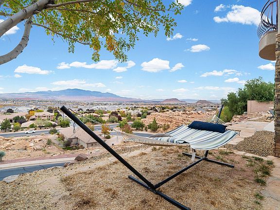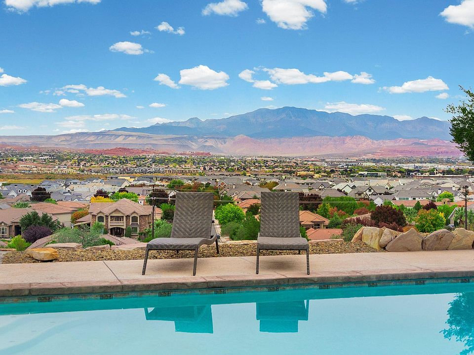 IMAGINE living in this home where every day feels like a vacation! With arguably the best view in St. George, this property captures sweeping red-rock panoramas and City views. Ideally located adjacent to Stone Cliff without the costly HOA, enjoy luxury living in your own secluded oasis. Everything you need is located on the main-floor; complete with a flexible exercise room/office, a gourmet kitchen with wrap-around pantry, and a primary suite featuring a soaking tub perfectly positioned to take in the view. Step outside to your private pool and fire pit, or head upstairs to an expansive deck designed for effortless entertaining.