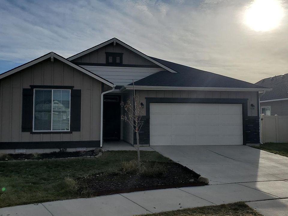 Beautiful home with fresh paint and nice LVP flooring throughout. This 4-Bedroom home is tucked into a quiet neighborhood in south Meridian with a fenced backyard near the new Swan Falls High School. Great access to Meridian, Kuna and the Freeway. Stainless steel appliances and spacious, open concept. Large master bedroom with dual vanity and walk-in closet. The house looks small from the street view but is very spacious with 2026 square feet. Two-Car garage with opener. Large laundry room with washer and dryer hook-ups. Call owner to schedule a tour. This is a Non-Smoking home. Owner pays pressurized irrigation fees and HOA feed. Tenants is responsible for all other utilities and yard maintenance. Yard has automatic sprinklers and pressurized irrigation. Small dog negotiable with pet deposit.