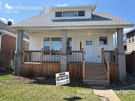 Welcome to 1489 Windermere Rd., a beautifully updated single-family home in one of Windsors most desirable neighbourhoods. This spacious 3-bedroom + den, 2-bathroom home has been fully renovated and is perfect for families or professionals seeking modern comfort and timeless charm. Step into a bright and welcoming living space with fresh finishes throughout. The newly renovated kitchen features brand-new stainless steel appliances, sleek cabinetry, and ample counter spaceideal for cooking and entertaining. Each of the three bedrooms is generously sized, while the additional den offers flexibility as a home office, guest room, or creative space. Enjoy two fully updated bathrooms for added convenience, and take advantage of the unfinished basement for extra storage or future use. The private yard provides the perfect outdoor space to relax or entertain. Located on Windermere Road, you're just minutes from parks, schools, shopping, and all the amenities South Walkerville has to offer. The tenant is responsible for hydro, gas, & water. First and last month's rent and a credit check are required. One-year lease minimum. Professionally managed by MARDA Management, offering 24/7 maintenance support and easy rent payment options. Fenced Back Yard Freshly Painted Front Porch Laminate Flooring New Countertop Installed No Smoking Allowed Pet Friendly Pet Friendly Building