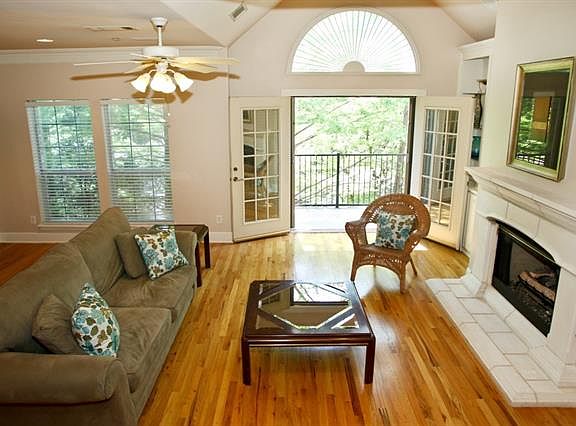 INCREDIBLE VIEW & in the trees! Lake setting is rare! Extensive hardwoods in living, stairs, & kitchen. Inviting balcony right living room in trees! New interior paint 2016. Kitchen with granite, gas cook top, convection micro 2016. Flexible layout with study or 4th bedroom on main floor. Large master suite with fpl. 1st floor beds walk out to patio with lake view. HVAC replaced last few years. New Wi-fi thermostats! LOCATION TO LEGACY & DT!