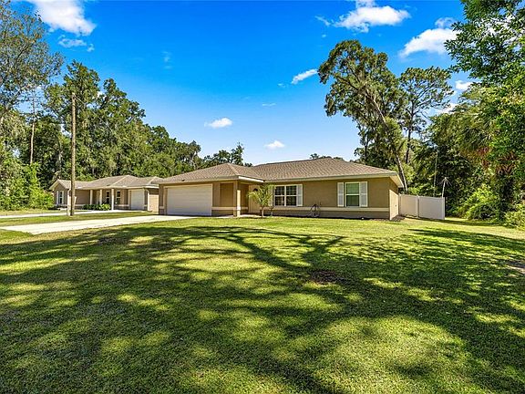 Welcome to this peaceful property recently built in 2022. No HOA in Belleview Heights Estate. Home features 3 Bedroom, 2 Bath, 2 car garage and 1,335 living sq ft. Updates include: Backyard fenced with vinyl privacy fence, fire pit, 8x10 shed, whole house water softener and filtration, upgraded refrigerator, microwave and washer and dryer. The quiet backyard is landscaped with fruit trees to enjoy including: tangelo, loquat, pineapple, ponderosa lemons and bananas. Convenient location in Summerfield, close to all amenities. Zoned for Belleview Middle School and Belleview High School. Take a look at everything this charming property has to offer.
