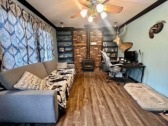 Wood burning stoveFlat backyardNice big kitchenWell maintained roomy bedroomsLots of lightNewly renovated bathCovered porch