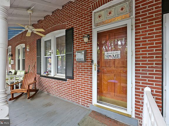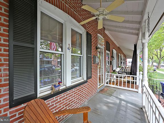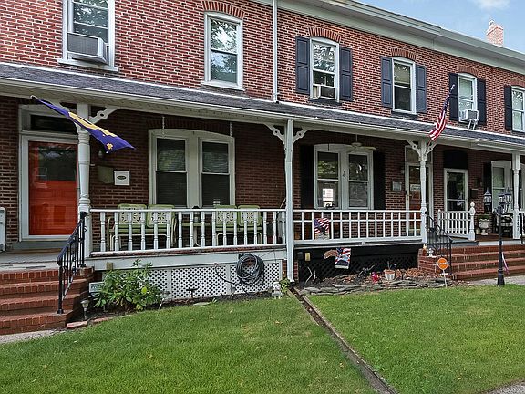 Welcome to this 2 story brick townhouse, complete with a covered front porch on a beautiful quiet 1 way tree lined street.  This home features 2 bedrooms upstairs and 1.5 bathrooms. There are hardwood floors throughout the entire home and also a full unfinished basement.  The living room and dining room open to one another and have 9ft ceilings.  The kitchen is off the back of the house and features Stainless steel appliances, tiled floor, and wood cabinets. Both bathrooms have been updated as well.  The basement has a gas boiler and the home has baseboard heating.  The backyard is fully fenced and has a small deck and patio. There is also a shed for storage. Just 2 blocks from the River Walk and Playground. Very cute area.