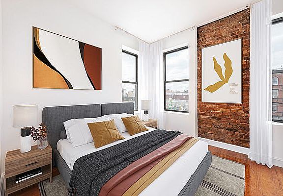 Recently Renovated 3BR/1.5BA with In-Home Laundry in Park Slope This third floor 3-bedroom, 1.5-bathroom apartment has three exposures, two corner bedrooms, and a renovated kitchen that sits between separate living and dining areas. The fully appointed kitchen features Caesarstone countertops, white lacquer cabinetry, and full-sized stainless steel appliances, and nicely punctuates the living and dining areas. There are three bedrooms, two with corner exposures and each with their own closets. Two baths are located in the center of the apartment, one of which is a half bath. Modern amenities in this beautifully renovated apartment include an in-unit washer/dryer, a fully renovated kitchen, and recessed lighting throughout. The apartment also has new hardwood floors, exposed brick accents, and nine total windows. The building is equipped with a Latch keyless entry system, allowing residents to enter the building via a smartphone app and manage deliveries remotely. The building is also professionally managed, featuring a dedicated super and an online portal for rent payment and maintenance requests. Subway access nearby includes the R-train at Union Street, along with the B, D, N, Q, R, 2, 3, 4 and 5-trains at Atlantic Avenue-Barclays Center (with an entrance on 4th Ave and Pacific Street). Enjoy outdoor dining or takeout from great local eateries like Three's Brewing, Public Records, Dinosaur Bar-B-Que, Bogota, Negril, Alchemy, and al di la Trattoria. 149 4th Avenue also nearby to the stores at Atlantic Center. Some photos have been virtually staged.