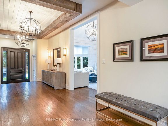 Luxury Home in Coveted Nipissing Ridge - 7 Beds, 8 Baths. This grand-scale luxury home offers 6,600 sq. ft. of finished living space across three levels, located in the prestigious Nipissing Ridge neighborhood-ideal for year-round living or weekend retreats near the ski hills. Featuring 7 bedrooms (6 with private ensuites, including one on the main floor) and 8 baths, this home is designed for comfort, space, and entertaining. The open-concept gourmet kitchen includes high-end finishes, a large dining area, and a walk-out balcony with gas hookup for year-round barbecuing. A separate entrance and back staircase lead to two private bedrooms with full ensuites-perfect for teens, guests, or in-law suites. Enjoy partial bay views and large windows overlooking a beautiful garden with a creek, wooded area, and custom treehouse. The oversized two-car garage provides space for recreational vehicles and inside entry to both the main and lower levels. Multiple outdoor spaces include a deck off the kitchen, living room, and primary suite. The lower level walkout is designed for entertaining with a bar, kitchenette, gym, and home theatre, along with a patio area for outdoor gatherings. Conveniently located near beaches, and premier ski clubs, this home offers an unmatched combination of luxury, lifestyle, and location. Truly one of a kind-don't miss this rare opportunity!