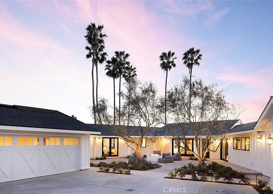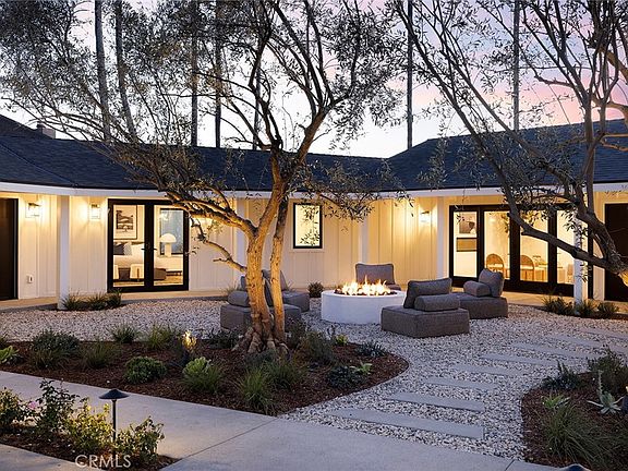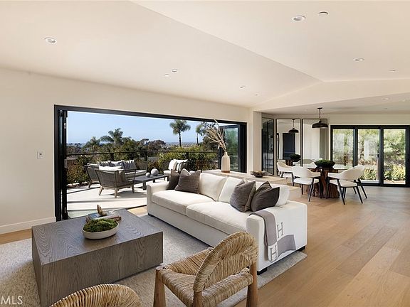 Perched on an approximately quarter-acre lot, this stunning 4-bedroom, 3.5-bathroom San Clemente home has been completely reimagined from the studs up, offering a seamless blend of coastal warmth and modern luxury throughout its approximately 2,978 sq. ft. of living space. Thoughtfully designed by Kaizon Interiors, every element has been curated to create an inviting yet sophisticated retreat. Upon entry, the large open-concept layout unfolds, revealing a spacious living room with a cozy fireplace, a dedicated dining area, and an elegantly designed kitchen, all flowing together effortlessly. Rich wide plank hardwood floors and high-end black accent hardware add warmth and contrast throughout the space. The kitchen is beautifully appointed with all-new Thermador appliances, quartz countertops, a stylish tile backsplash, pendant lighting, and a breakfast counter, balancing both form and function. The primary suite is a true sanctuary, featuring an ensuite bath with dual sinks, quartz countertops, a walk-in shower, and a freestanding soaking tub, as well as a custom-built dual closets for elevated organization. Three additional bedrooms provide flexibility, including one with a private entrance and ensuite bathroom, making it ideal for multi-generational living, an ADU, or a guest suite. Designed to embrace the indoor-outdoor lifestyle, the home’s horseshoe-shaped layout wraps around a central courtyard, creating a private and tranquil open-air retreat. Multiple access points seamlessly connect the home to this lushly landscaped space, where a cozy firepit provides the perfect gathering spot for relaxing under the stars. Beyond the courtyard, the backyard opens to stunning ocean views, offering a breathtaking backdrop to this exceptional coastal home. Positioned below street level for enhanced privacy, this home offers a rare combination of seclusion, architectural innovation, and luxury coastal living in the heart of San Clemente.
